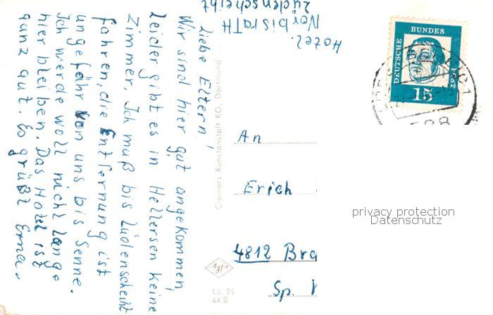 73832474 alte Postkarte Luedenscheid Parkhaus Ehrenmal Waldpartie in der Nurre Basse-Nolte-Allee postalisch gelaufen Erhaltung siehe scans [FriedD77] KatCode: 11110005962032