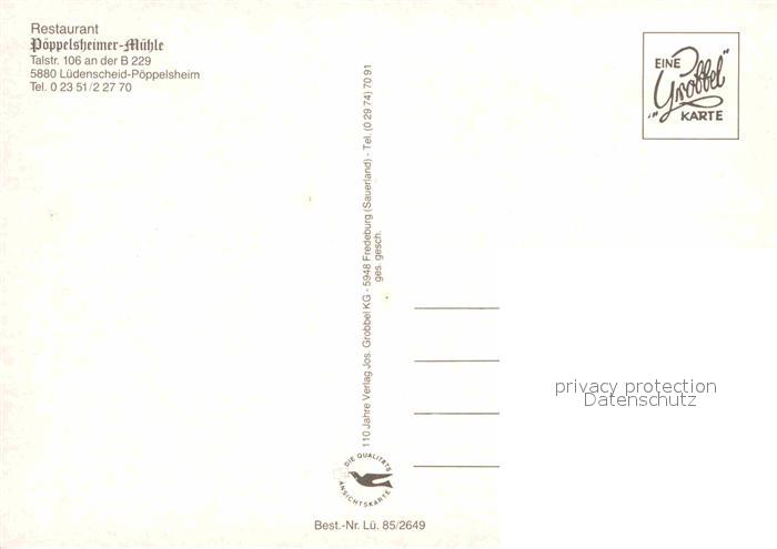 72659546 Luedenscheid Restaurant Poeppelsheimer-Muehle postalisch nicht gelaufen Erhaltung siehe scans [NatalD47] KatCode: 11110005962032