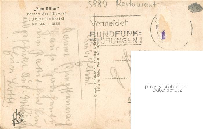 73710005 alte Postkarte Luedenscheid Restaurant Zum Ritter Innenansicht postalisch gelaufen Erhaltung siehe scans [LiesaD40] KatCode: 11110005962032