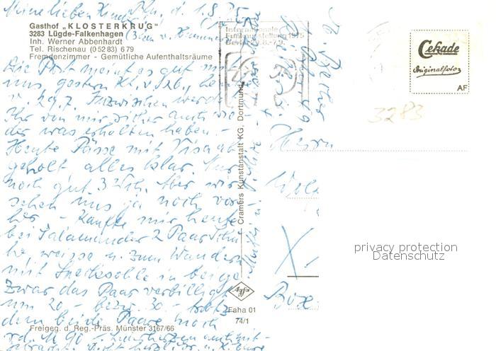 73747024 alte Postkarte Luedge Fliegeraufnahme Gasthof Klosterkrug postalisch gelaufen Erhaltung siehe scans [LiesaD40] KatCode: 11110003252003