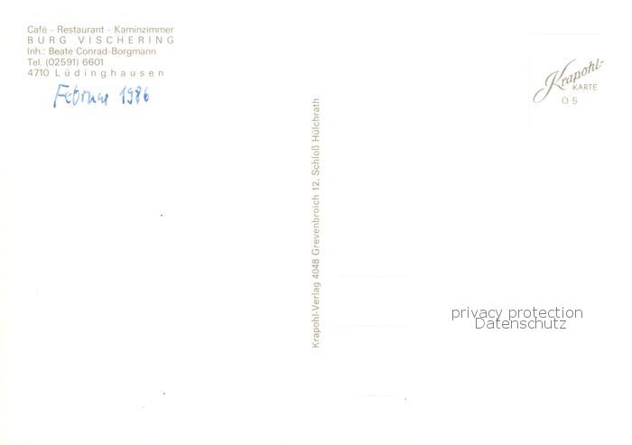 73865104 Luedinghausen Cafe Restaurant Burg Vischering Kaminzimmer postalisch nicht gelaufen Erhaltung siehe scans [FriedD77] KatCode: 11110005558024