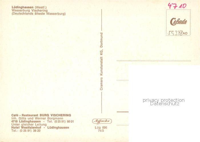 73774980 Luedinghausen Wasserburg Vischering postalisch nicht gelaufen Erhaltung siehe scans [WerneD78] KatCode: 11110005558024