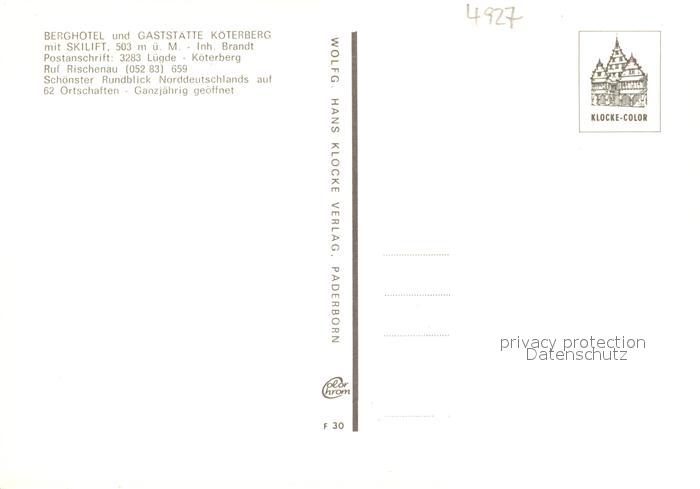 73163660 Luegde Berghotel Koeterberg Restaurant Fernmeldeturm postalisch nicht gelaufen Erhaltung siehe scans [FriedD77] KatCode: 11110005766052