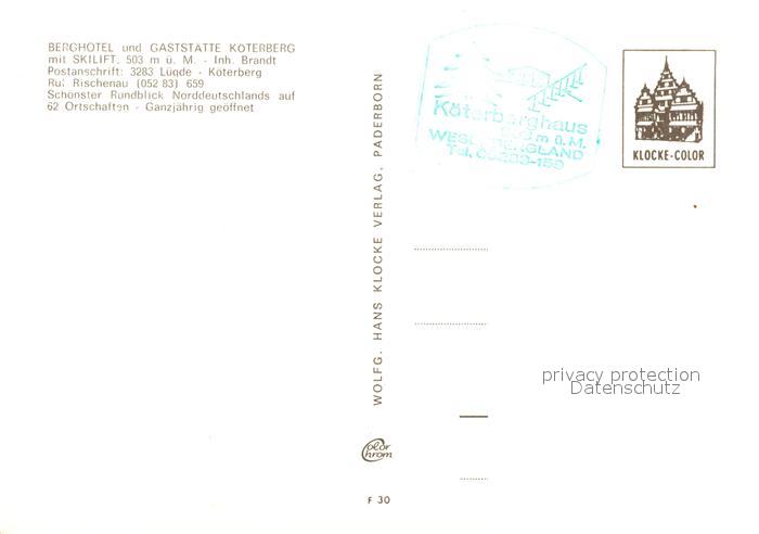 73167308 Luegde Berghotel Koeterberg Restaurant Fernmeldeturm postalisch nicht gelaufen Erhaltung siehe scans [FriedD77] KatCode: 11110005766052