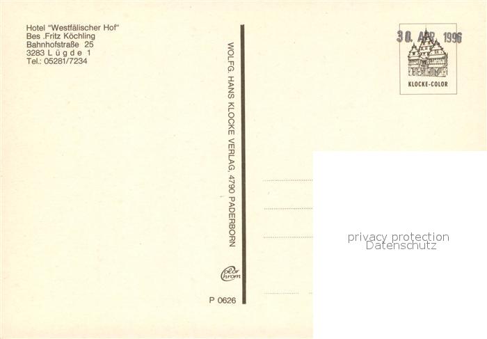 73723206 Luegde Hotel Westfaelischer Hof Gastraeume Zimmer postalisch nicht gelaufen Erhaltung siehe scans [WerneD78] KatCode: 11110005766052