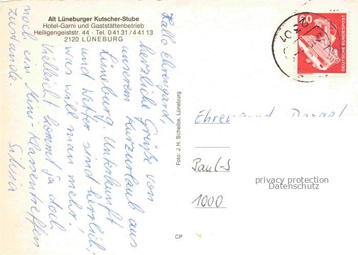 74043381 LueNEBURG CITY Alt Lueneburger Kutscher-Stube Hotel Restaurant Gastzimmer postalisch gelaufen Erhaltung siehe scans [FriedD77] alte Postkarte Frie Katcode 11110003355022
