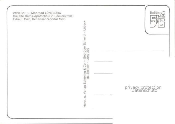 72450843 LueNEBURG CITY Alte Raths Apotheke postalisch nicht gelaufen Erhaltung siehe scans KatCode: 11110003355022