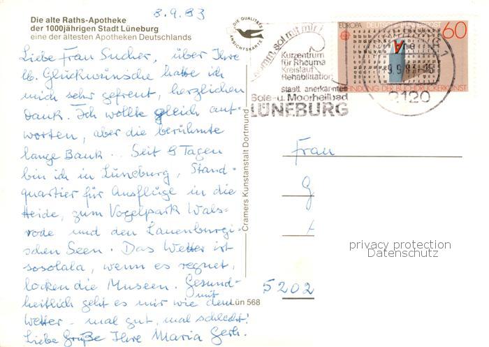 73805046 LueNEBURG CITY Alte Ratsapotheke postalisch gelaufen Erhaltung siehe scans [FriedD77] alte Postkarte Frie Katcode 11110003355022