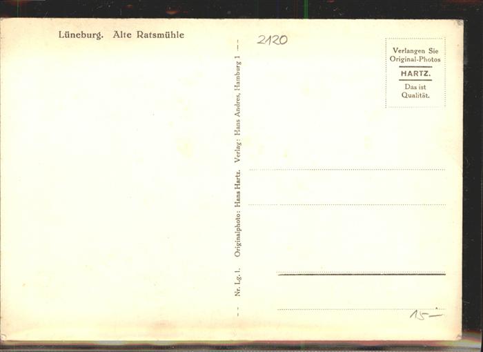 41325753 LueNEBURG CITY Alte Ratsmuehle postalisch nicht gelaufen gute Erhaltung Alte Ansichtskarte Postkarte hz_W Katcode 11110003355022
