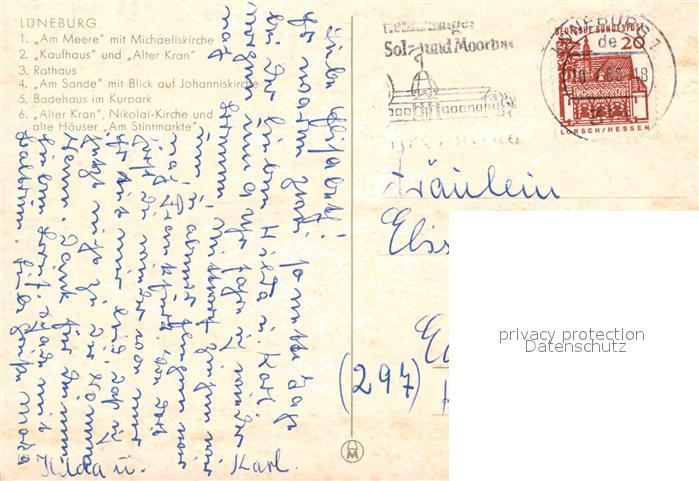 72694607 alte Postkarte LueNEBURG CITY Am Meere Kirchen Kaufhaus Alter Kran Rathaus Am Sande Badehaus Kurpark Alte Haeuser Am Stintmarkte postalisch gelaufen Erhaltung siehe scans [FriedD77] KatCode: 11110003355022