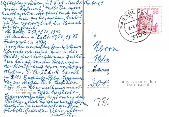 72718301 alte Postkarte LueNEBURG CITY Am Stintmarkt postalisch gelaufen Erhaltung siehe scans [LiesaD40] KatCode: 11110003355022