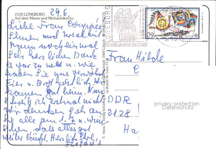 72614504 alte Postkarte LueNEBURG CITY Auf dem Meere und Michaeliskirche postalisch gelaufen Erhaltung siehe scans [WerneD78] KatCode: 11110003355022