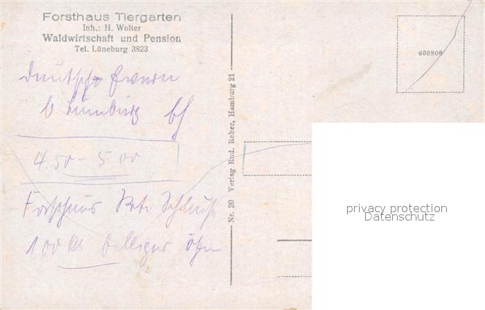 43287019 LueNEBURG CITY Forsthaus Tiergarten Waldwirtschaft Pension postalisch nicht gelaufen Erhaltung siehe scans [FriedD77] Frie Katcode 11110003355022