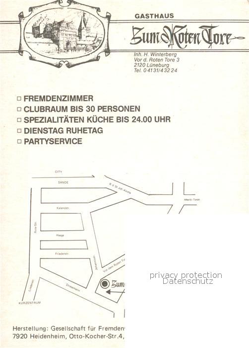 72954387 LueNEBURG CITY Gasthaus Zum Roten Tore Restaurant postalisch nicht gelaufen Werbekarte (keine Postkarte) Erhaltung siehe scans [FriedD77] KatCode: 11110003355022