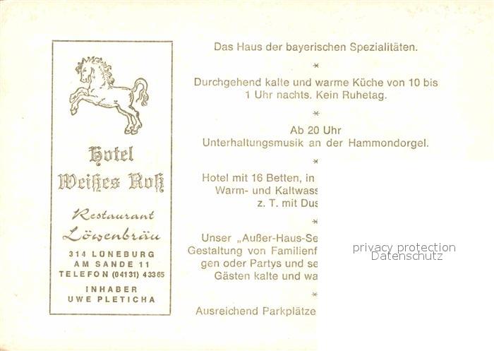 72656926 LueNEBURG CITY Hotel weisses Ross postalisch nicht gelaufen Werbekarte (keine Postkarte) Erhaltung siehe scans [AndreD76] KatCode: 11110003355022