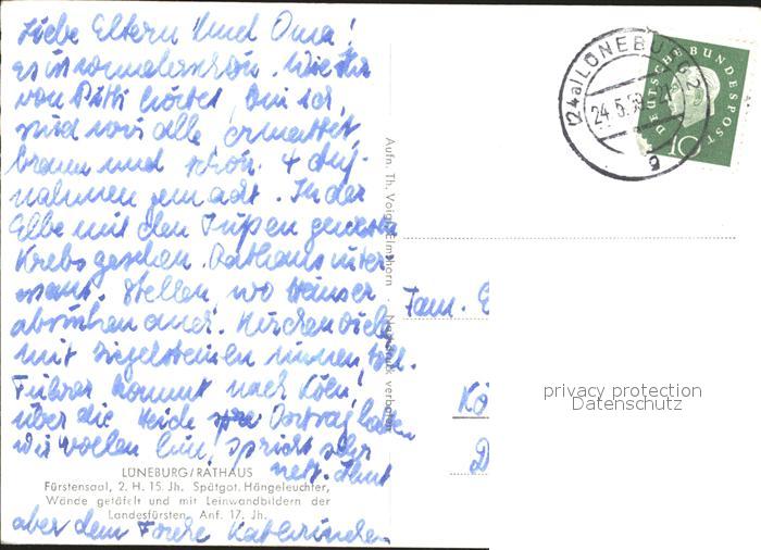 72350801 alte Postkarte LueNEBURG CITY Rathaus Fuerstensaal Spaetgot Haengeleuchter postalisch gelaufen Erhaltung siehe scans KatCode: 11110003355022
