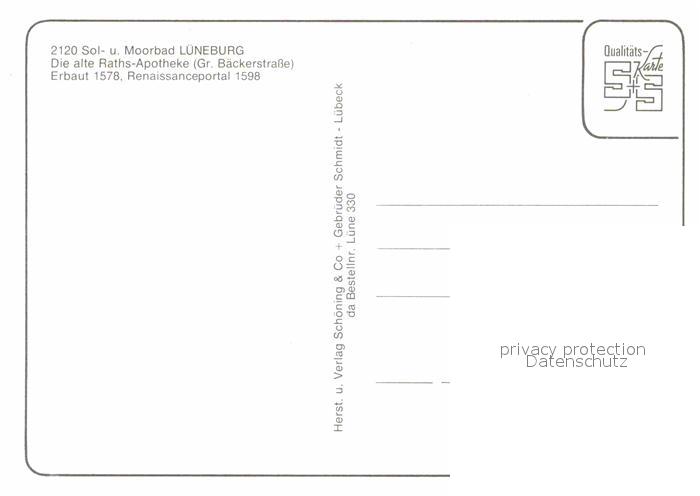 72898265 LueNEBURG CITY Raths Apotheke postalisch nicht gelaufen Erhaltung siehe scans [AndreD76] KatCode: 11110003355022