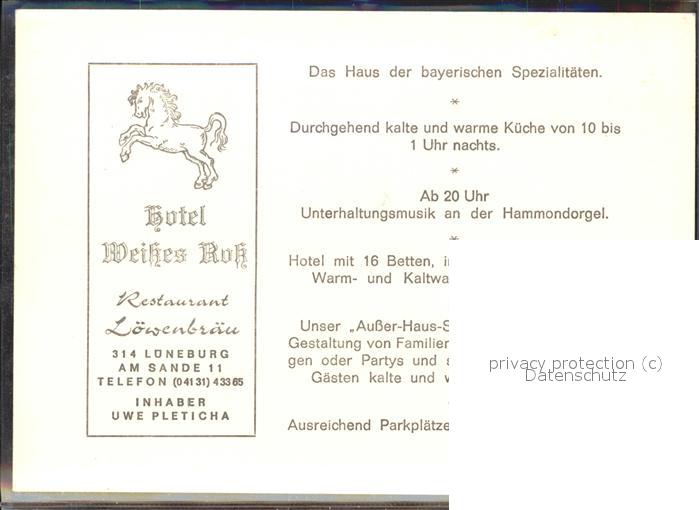 41477522 LueNEBURG CITY Restaurant Loewenbraeu Hotel Weisses Ross postalisch nicht gelaufen Werbekarte (keine Postkarte) Erhaltung siehe scans Werbekarte (keine Postkarte) hz_W Katcode 11110003355022
