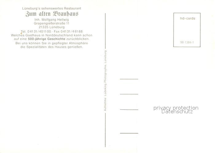 73726660 LueNEBURG CITY Restaurant Zum alten Brauhaus postalisch nicht gelaufen Erhaltung siehe scans [FriedD77] Frie Katcode 11110003355022
