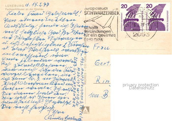 73127254 alte Postkarte Lueneburg Fachwerkhaeuser an der Ilmenau postalisch gelaufen Erhaltung siehe scans [LiesaD40] KatCode: 11110003355022