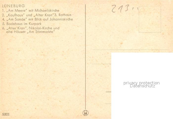 73292870 Lueneburg Michaeliskirche Kaufhaus Alter-Kran Am-Sande Badehaus im Kurpark Am Stintmarkte postalisch nicht gelaufen Erhaltung siehe scans [LiesaD40] KatCode: 11110003355022