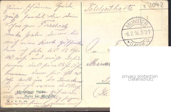 42174540 alte Postkarte Lueneburger Heide Garlstorf postalisch gelaufen Feldpost Erhaltung siehe scans KatCode: 11110003358022