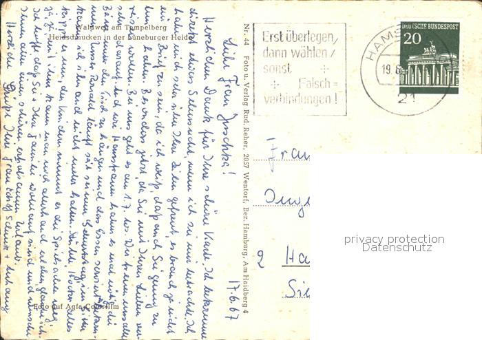71960070 alte Postkarte Lueneburger Heide Hausbruch Neugraben Fischbeker Heide Falkenberg postalisch gelaufen Erhaltung siehe scans KatCode: 11110003358022