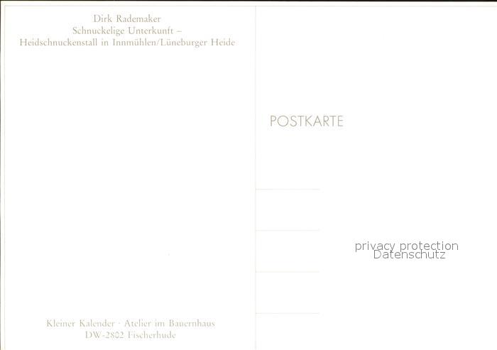 72585676 Lueneburger Heide Innmuehlen Heidschnuckenstall Dirk Rademaker postalisch nicht gelaufen Erhaltung siehe scans [LiesaD40] KatCode: 11110003358022