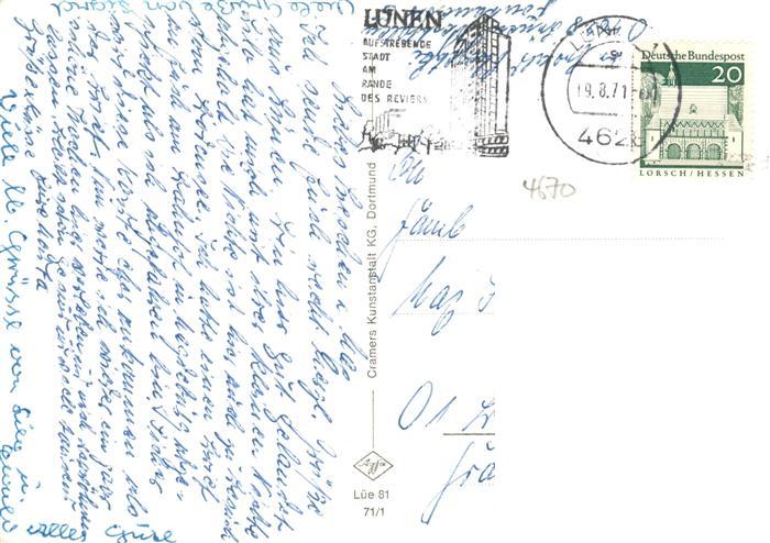 73895343 Luenen UNNA NRW Berufsschule Neue Siedlung Schloss Schwansbell Ev Kirche Am Stadtbad Zeche Viktoria Geschw Scholl Schule Schloss Coppenberg postalisch gelaufen Erhaltung siehe scans [WerneD78] alte Postkarte Wern Katcode 11110005978024