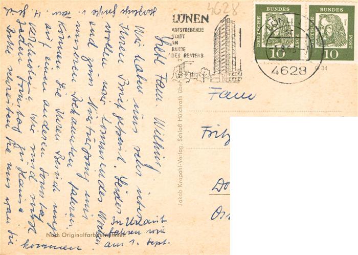 73936311 Luenen UNNA NRW Hochhaus Stadttheater Ortspartie postalisch gelaufen Erhaltung siehe scans [WerneD78] alte Postkarte Wern Katcode 11110005978024