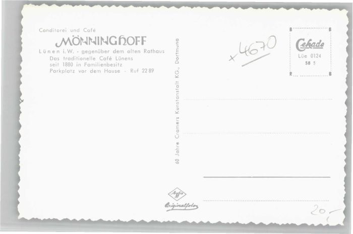 40682629 Luenen UNNA NRW onditorei Cafe Moenningroff * postalisch nicht gelaufen Alte Ansichtskarte Postkarte Katcode 11110005978024