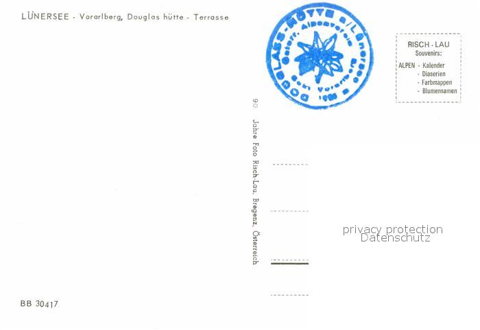 72855188 Luenersee Vorarlberg Douglas Huette Terrasse postalisch nicht gelaufen Erhaltung siehe scans [AndreD76] KatCode: 11390341080129