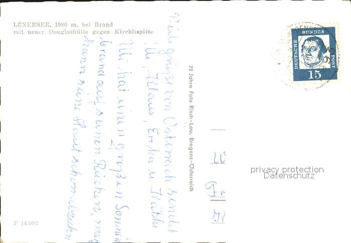 72509913 alte Postkarte Luenersee Vorarlberg Douglashuette Kirchlispitze postalisch gelaufen Erhaltung siehe scans KatCode: 11390341080129