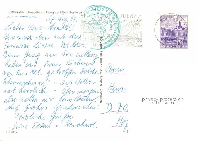 72627488 alte Postkarte Luenersee Vorarlberg Douglashuette Terrasse postalisch gelaufen Erhaltung siehe scans [FriedD77] KatCode: 11390341080129