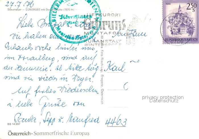 73577015 alte Postkarte Luenersee Vorarlberg Staumauer Stausee mit Douglashuette Alpen postalisch gelaufen Erhaltung siehe scans [FriedD77] KatCode: 11390341080129