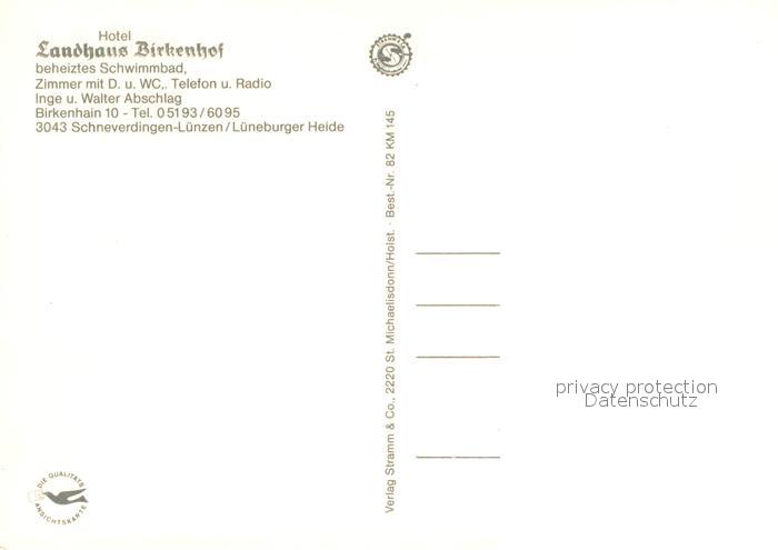 73725971 Luenzen Lueneburger Heide Landhaus Birkenhof Restaurant Fremdenzimmer Hallenbad postalisch nicht gelaufen Erhaltung siehe scans [FriedD77] KatCode: 11110003358019