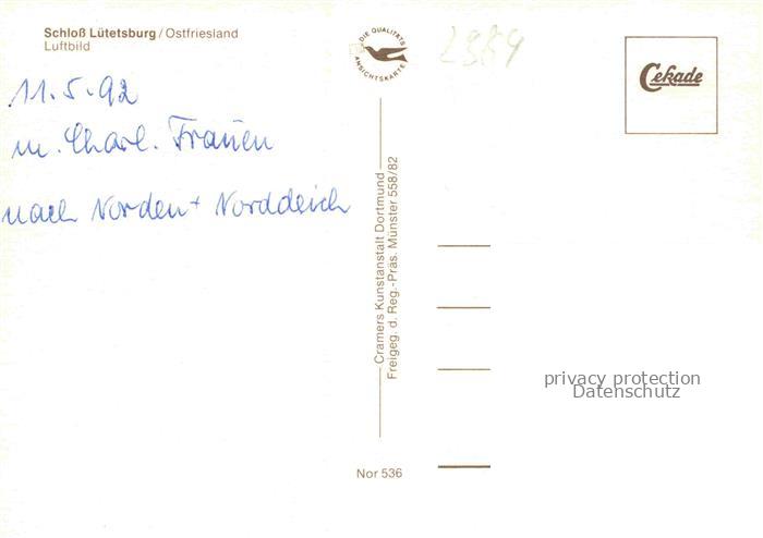 74156728 Luetetsburg NORDEN Ostfriesland Niedersachsen Schloss Wassergraben Gutsanlage Felder Wald Turm Luftbild postalisch nicht gelaufen Fliegeraufnahme Erhaltung siehe scans [Karloger] KatCode: 11110003452016