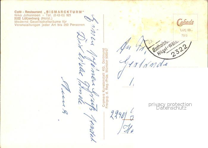 72022323 alte Postkarte Luetjenburg Holstein Cafe Restaurant Bismarckturm Fliegeraufnahme postalisch gelaufen Erhaltung siehe scans KatCode: 11110001057048