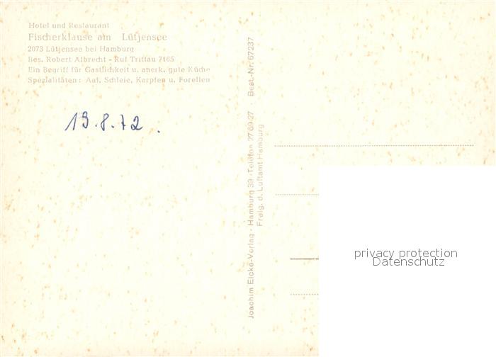 73105563 alte Postkarte Luetjensee Fischerklause am Luetjensee Fliegeraufnahme postalisch gelaufen Erhaltung siehe scans [WerneD78] KatCode: 11110001062045