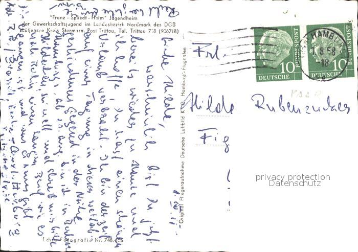 31841590 alte Postkarte Luetjensee Franz-Spliedt-Heim Fliegeraufnahme postalisch gelaufen Erhaltung siehe scans KatCode: 11110001062045