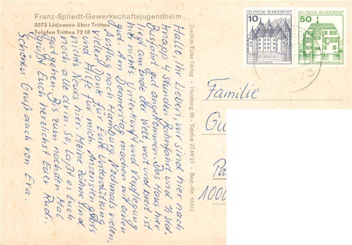 73884459 alte Postkarte Luetjensee Franz Spliedt Jugendheim Terrasse postalisch gelaufen Erhaltung siehe scans [WerneD78] KatCode: 11110001062045