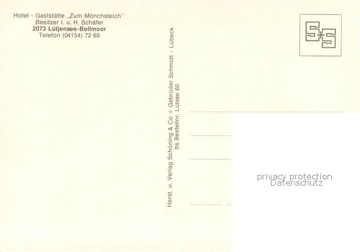 73730592 Luetjensee Hotel-Gaststaette Zum Moenchsteich postalisch nicht gelaufen Erhaltung siehe scans [LiesaD40] KatCode: 11110001062045