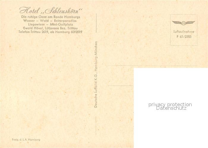 73727196 Luetjensee Hotel Schleushoern postalisch nicht gelaufen Fliegeraufnahme Erhaltung siehe scans [FriedD77] KatCode: 11110001062045