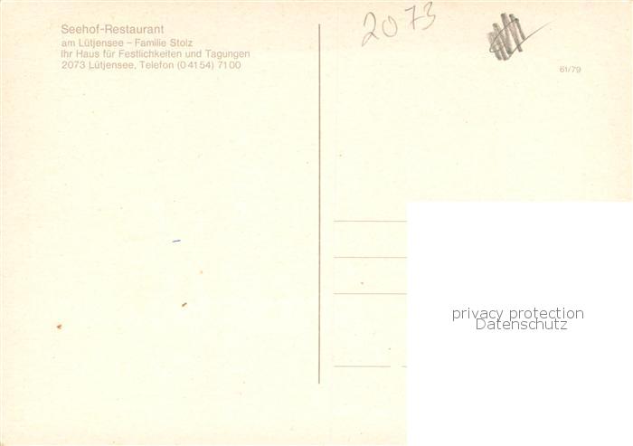 73763954 Luetjensee Seehof Restaurant Terrasse postalisch nicht gelaufen Erhaltung siehe scans [FriedD77] KatCode: 11110001062045