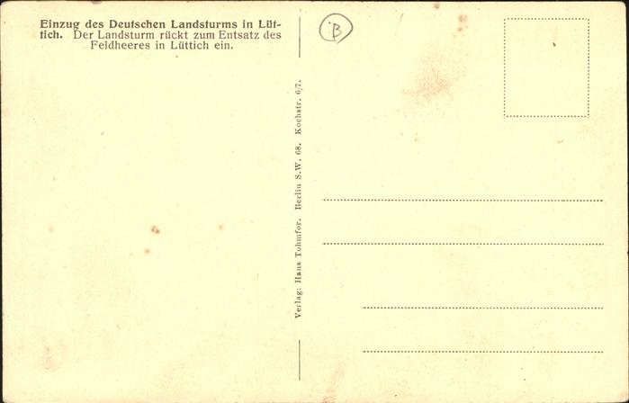 41108009 Luettich Liege Einzug des dt. Landsturms in Lüttich KatCode 11070062000376
