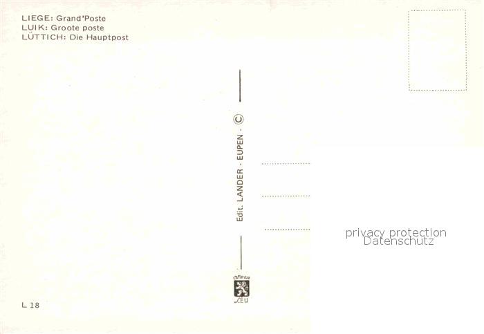 72890829 Luettich Liege Hauptpost postalisch nicht gelaufen Erhaltung siehe scans [AndreD76] KatCode: 11070062000376