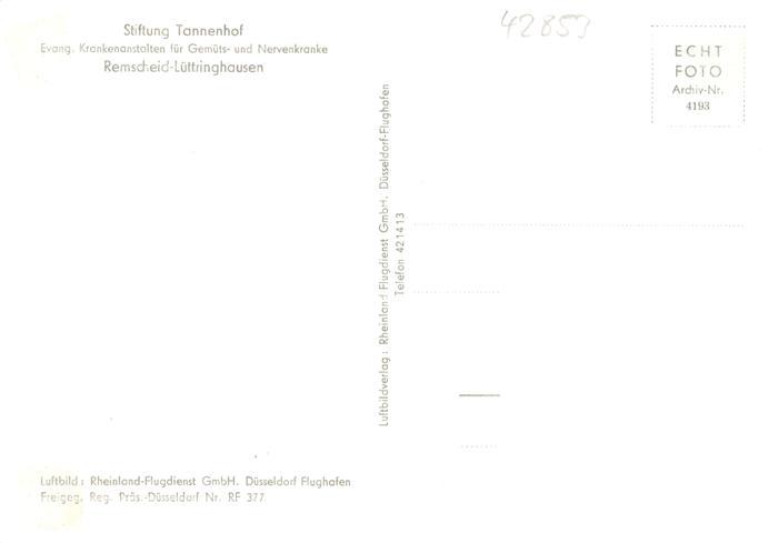 73869019 Luettringhausen Remscheid Fliegeraufnahme Stiftung Tannenhof postalisch nicht gelaufen Erhaltung siehe scans [FriedD77] KatCode: 11110005120000