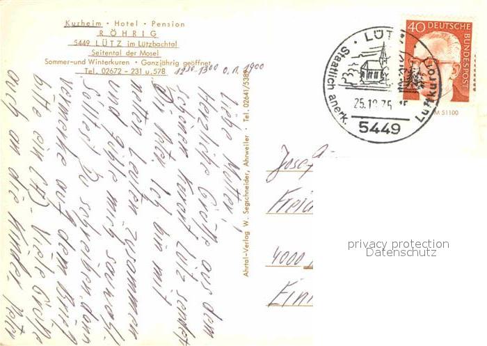 72656893 alte Postkarte Luetz Luetzbachtal Kurheim Roehrig postalisch gelaufen Erhaltung siehe scans [AndreD76] KatCode: 11110007135056