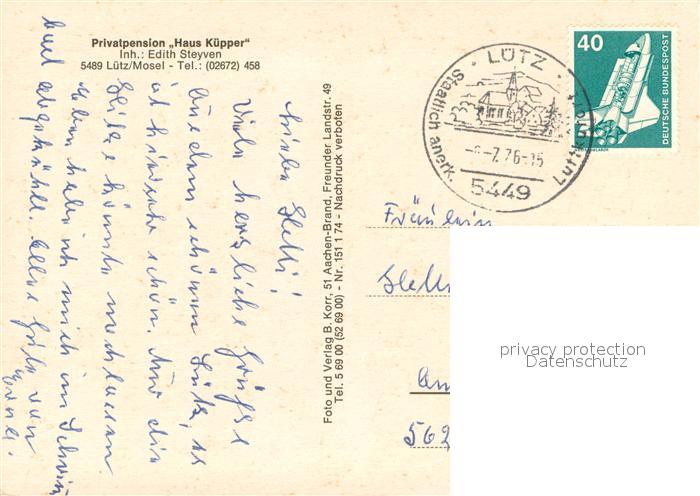 73647531 alte Postkarte Luetz Luetzbachtal Panorama Kirche Pension Haus Kuepper postalisch gelaufen Erhaltung siehe scans [WerneD78] KatCode: 11110007135056