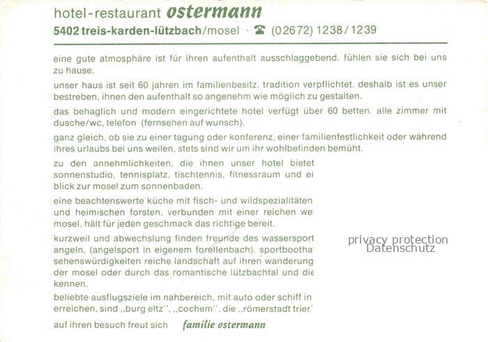 74166636 Luetzbach Treis-Karden Rheinland-Pfalz Hotel-Ostermann Restaurant Mosel Weinberge Luetzbach Flusstal Dorfansicht postalisch nicht gelaufen Erhaltung siehe scans [Karloger] KatCode: 11110007135082